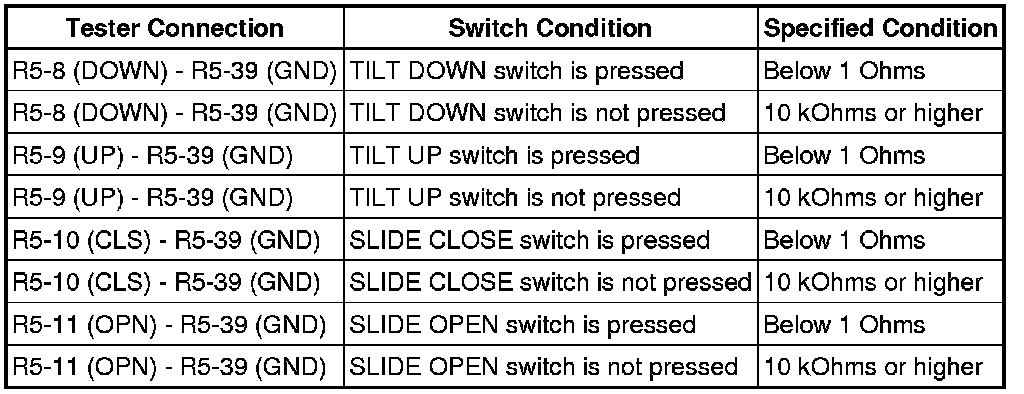 SLIDING ROOF: SLIDING ROOF SWITCH ASSEMBLY: INSPECTION