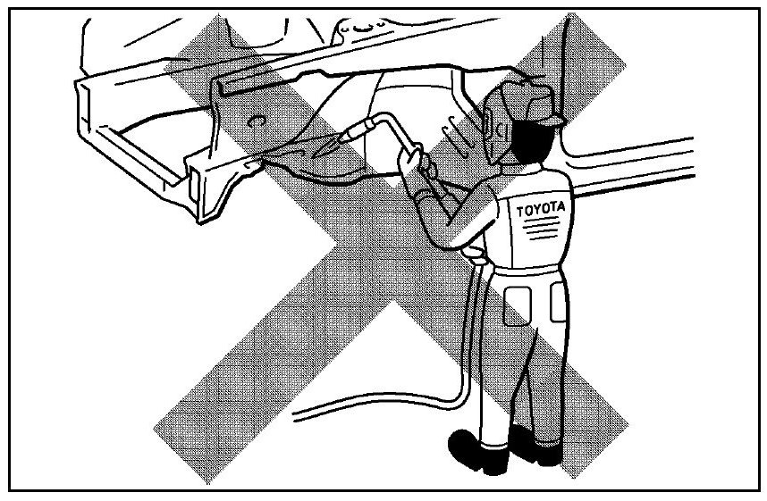 To prevent the occurrence of rust for a long period of time, the surface of the steel is coated with a zinc alloy. If body structure parts are heat repaired with an acetylene torch or other heating source, the crystalline organization of the steel sheet will change and their strength of the steel sheet will be reduced. The ability of the body to resist rust is significantly lowered as well since the rust resistant zinc coating is destroyed by heat and the steel sheet surface is oxidized.