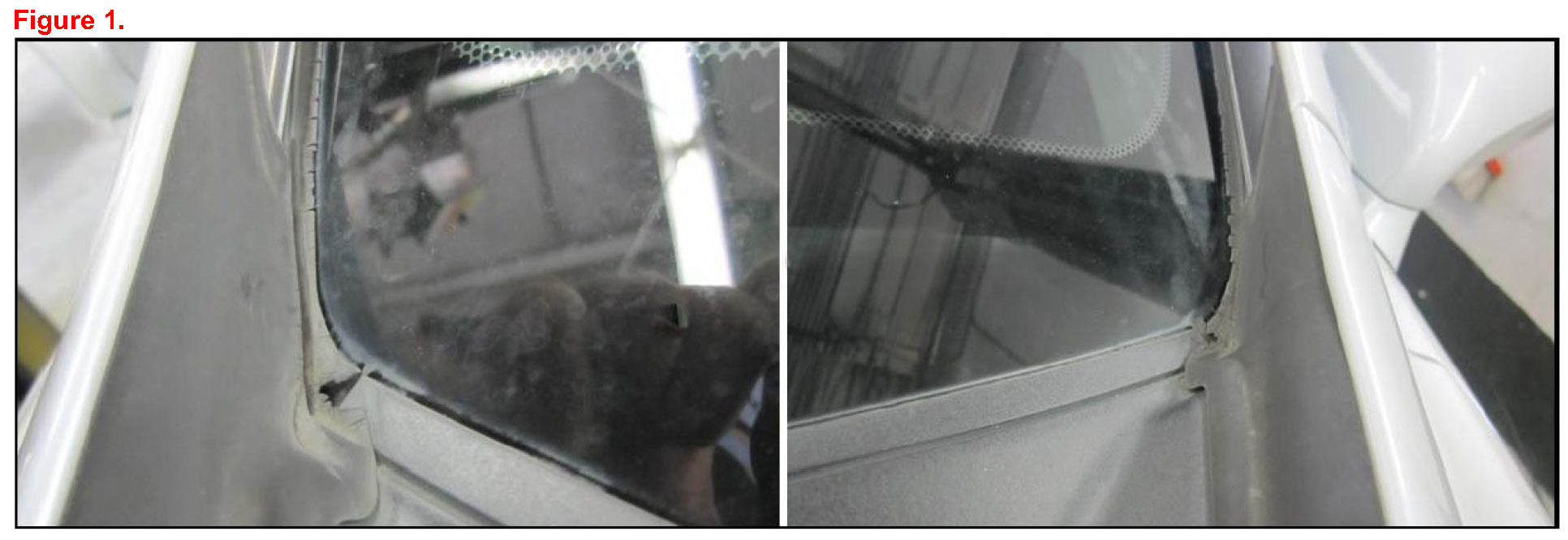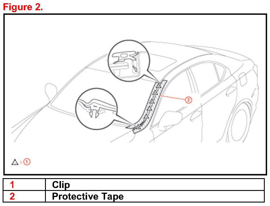 1. Confirm the roof drip side finish molding rubber is cracked or discolored (See Figure 1 ).