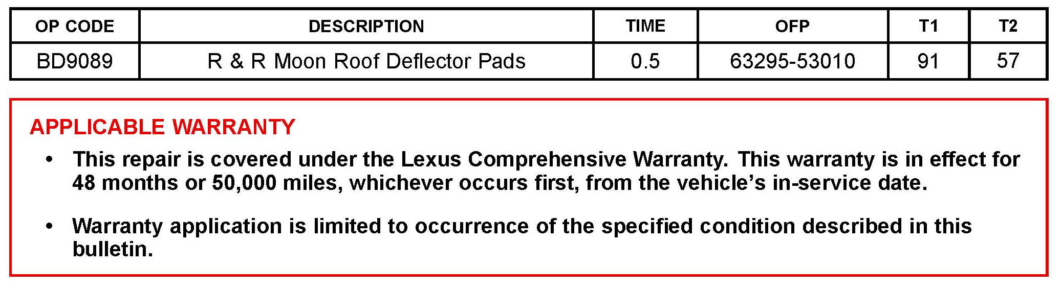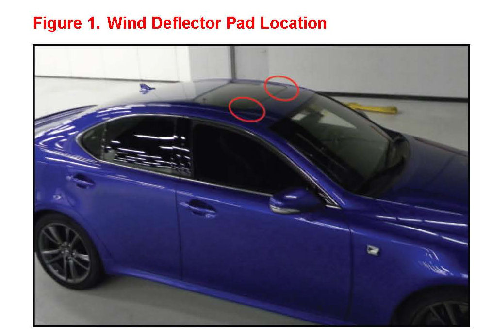 Some 2006 - 2010 model year IS vehicles may exhibit a throb noise and/or mirror vibration with the moon roof in the "Full Open" position. This condition is typically present between 45 - 65 mph. New moon roof deflector panel pads have been developed to address this condition.