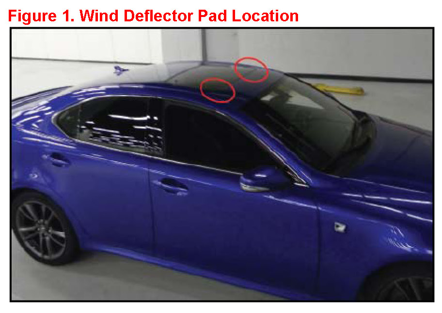 Some 2006- 2010 model year IS vehicles may exhibit a throb noise and/or mirror vibration with the moon roof in the "Full Open" position. This condition is typically present between 70 - 105 km/h. New moon roof deflector panel pads have been developed to address this condition.