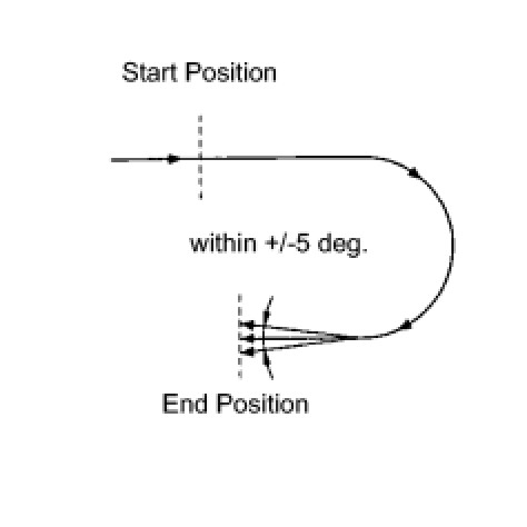 - Make a 180° turn. At the end of the turn, the direction of the vehicle should be within 180° +/-5° of its start position.