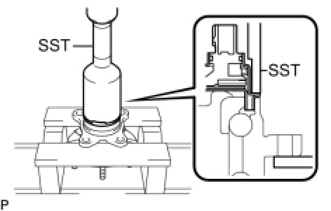 (c) Using the SST and press, install the skid control sensor onto the hub and bearing.