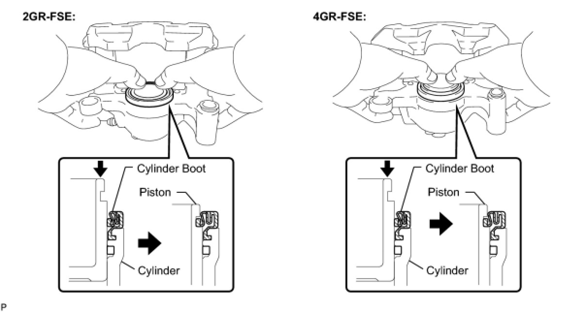 (b) Install the cylinder boot to the rear disc brake piston as shown in the illustration.