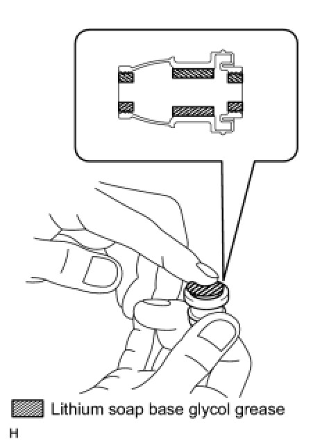(a) Apply a light layer of lithium soap base glycol grease to the entire circumference of the No. 1 rear disc brake cylinder support pin.