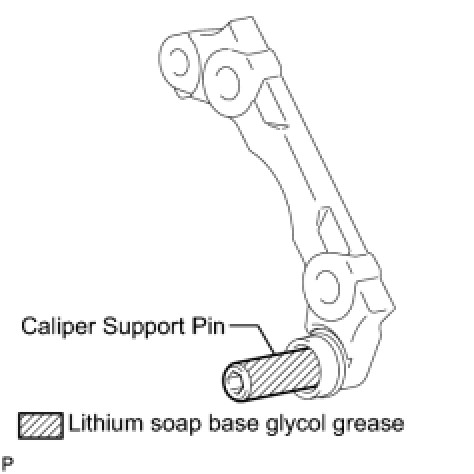 (a) Apply a light layer of lithium soap base glycol grease to the caliper support pin of the caliper support bracket as shown in the illustration.