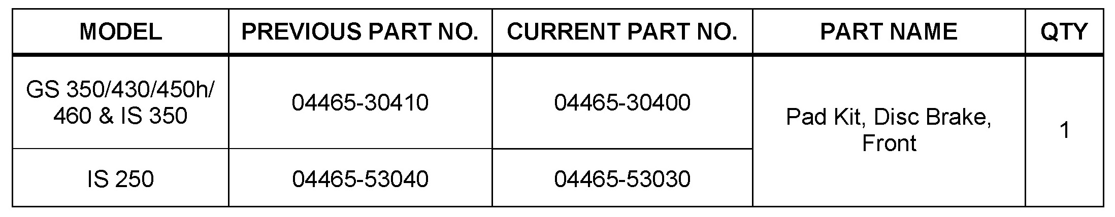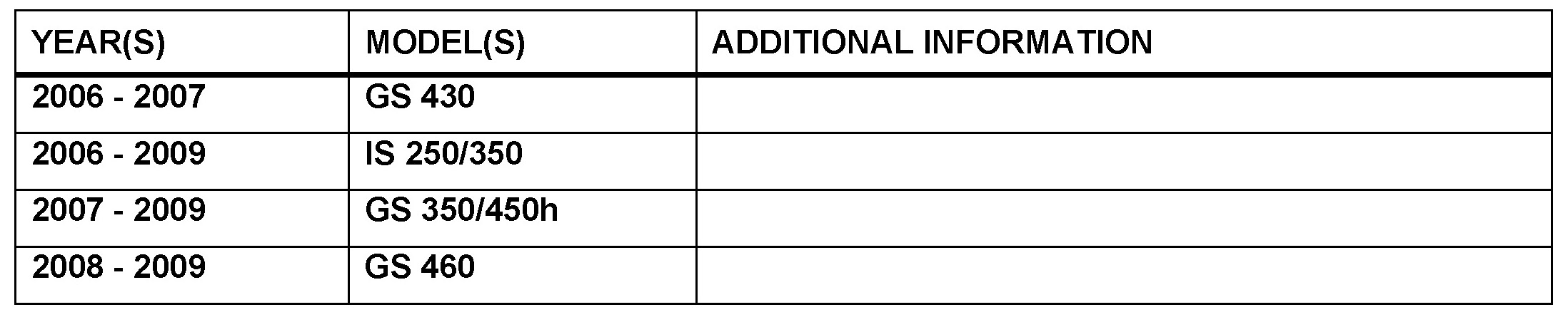 '06 - '07 GS430, '06 - '09 IS250/IS350, '07 - '09 GS350/450h, '08 - '09 GS460