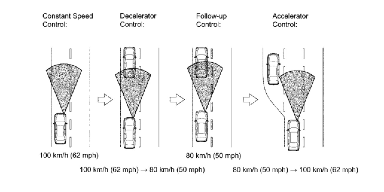 (a) The dynamic radar cruise control system has two cruise control modes: the constant speed control mode and vehicle-to-vehicle distance control mode.