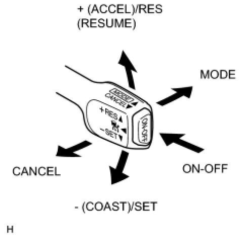 (b) Check the cruise control main switch using the DATA LIST function in the Techstream (ON-OFF, CANCEL, - (COAST)/SET, + (ACCEL)/RES (RESUME), and MODE).