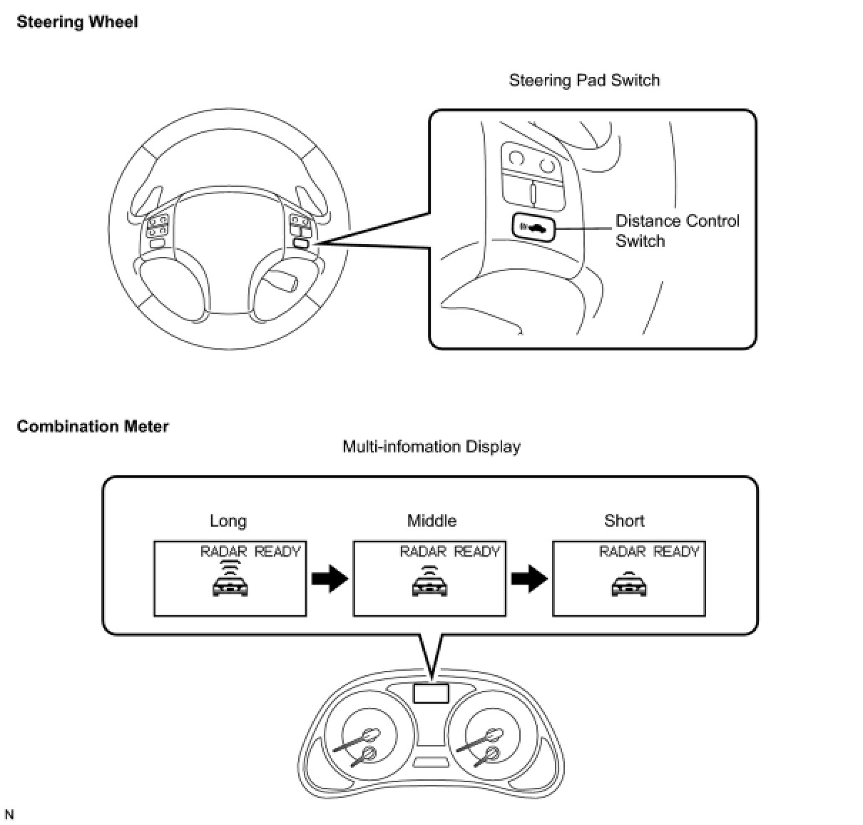 (c) Turn on the distance control switch of the steering pad switch.