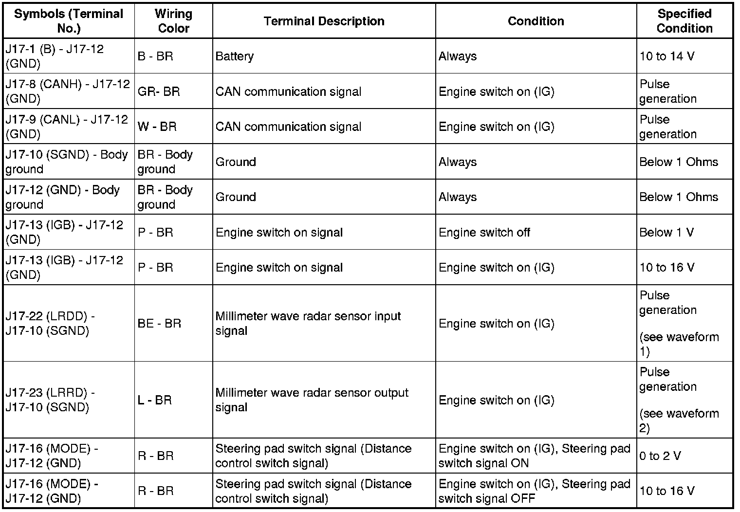 3. CHECK MILLIMETER WAVE RADAR SENSOR