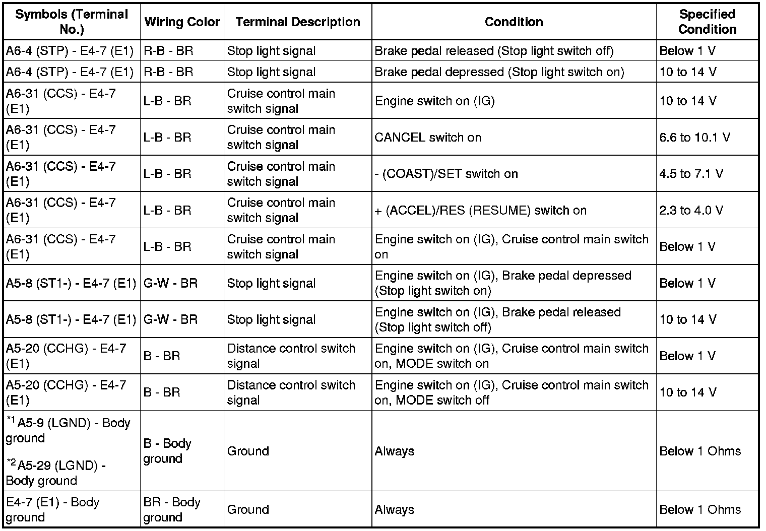 CRUISE CONTROL: DYNAMIC RADAR CRUISE CONTROL SYSTEM: TERMINALS OF ECU
