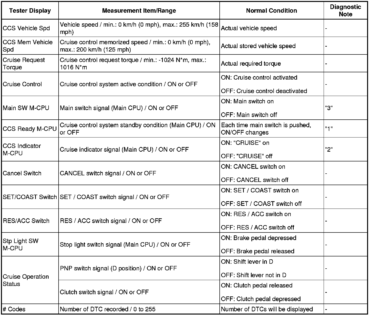 CRUISE CONTROL: CRUISE CONTROL SYSTEM: DATA LIST / ACTIVE TEST