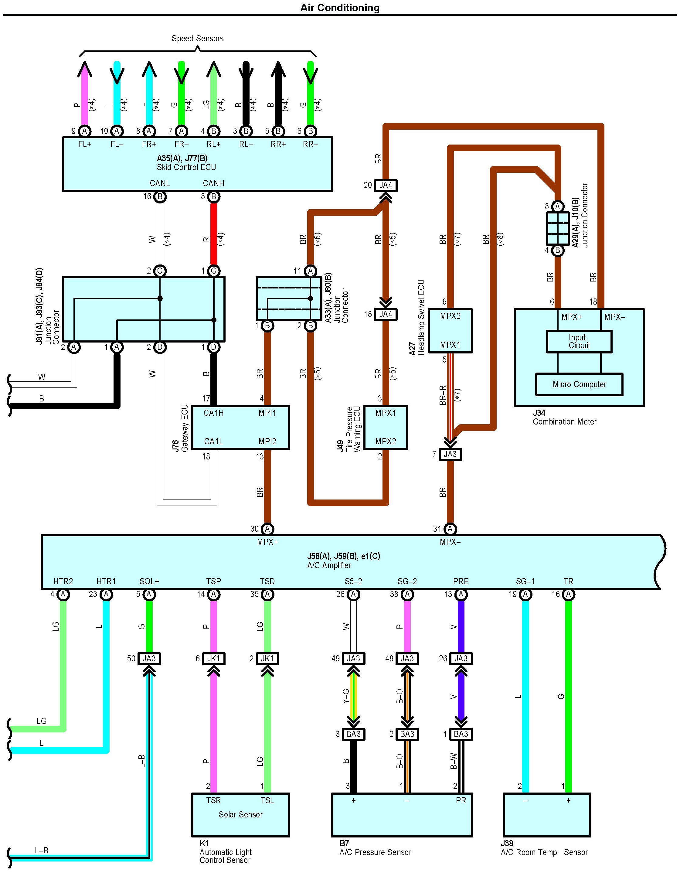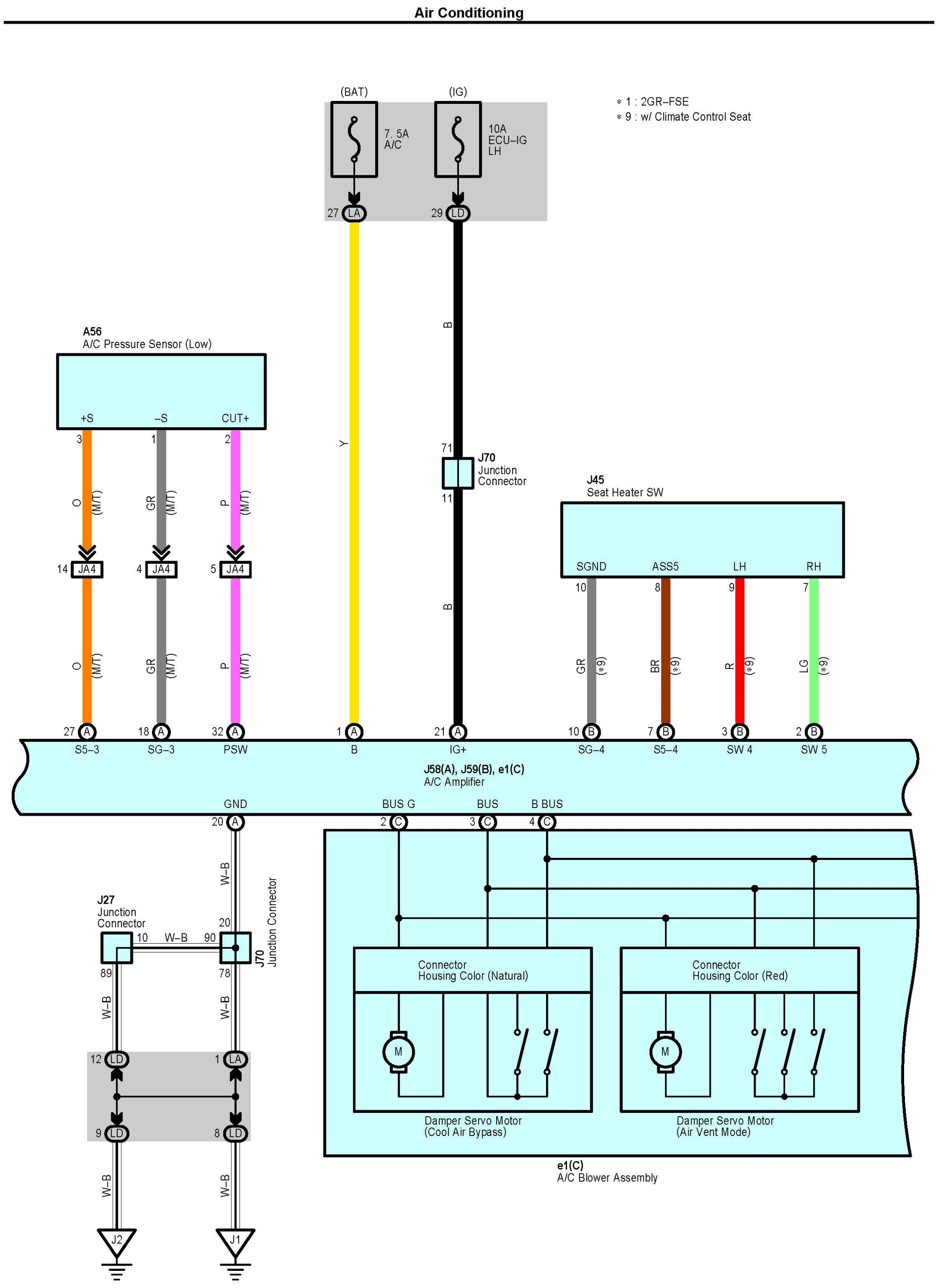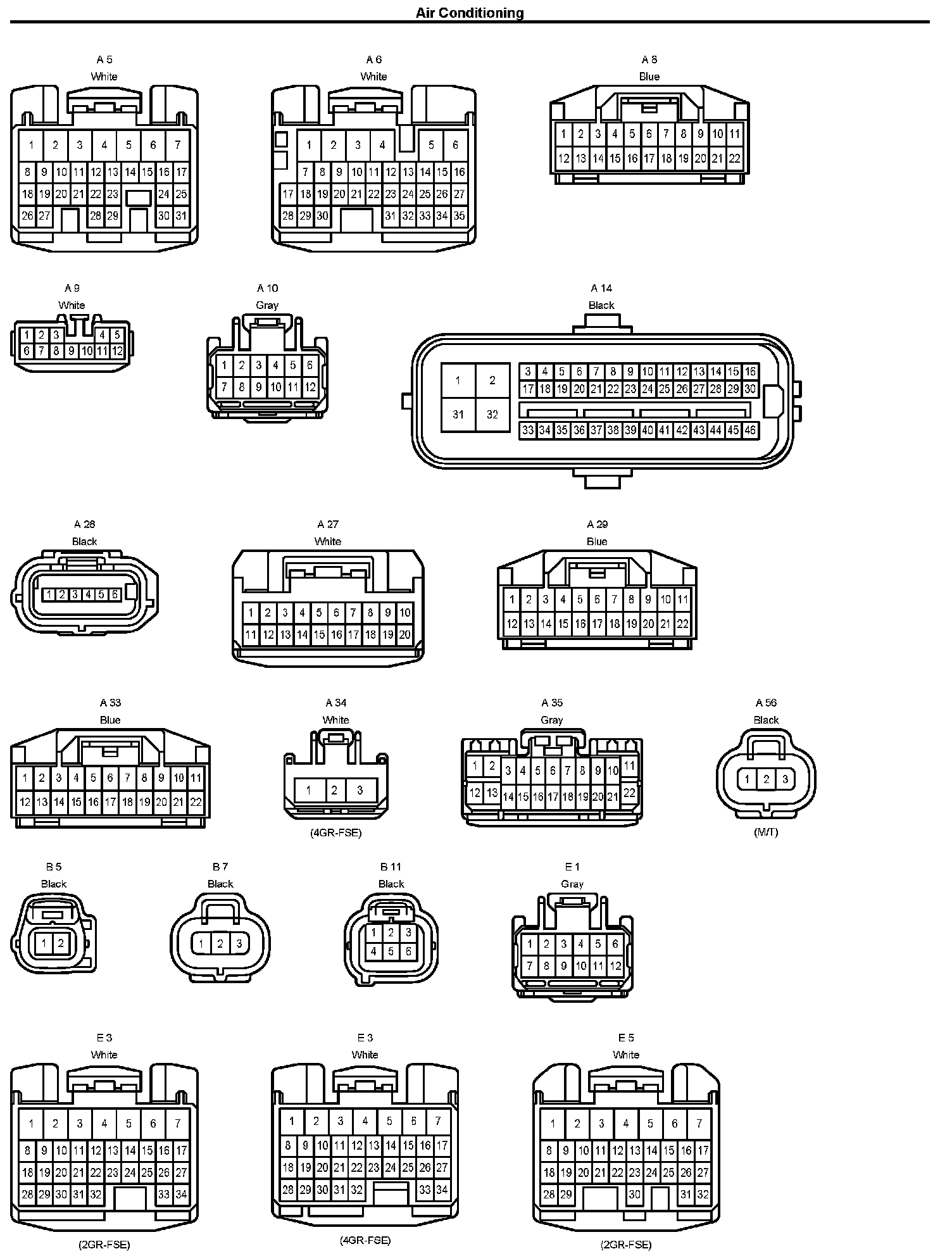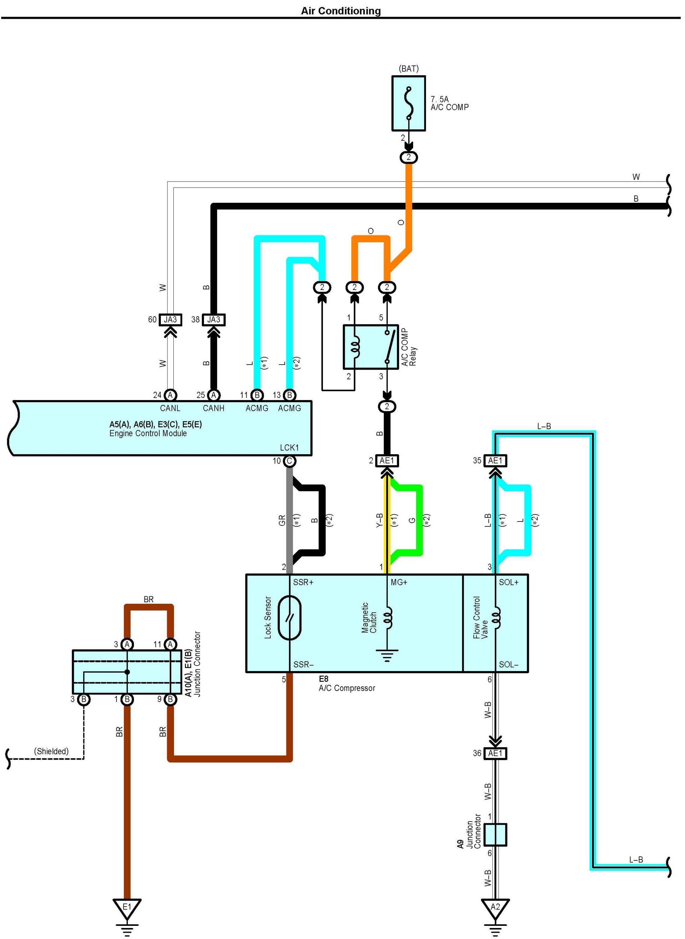 NOTE: Lexus uses a magnetic clutch type compressor as well as a flow control valve type. Both are contained within the diagram. Follow the portion of the digram applicable to the vehicle.