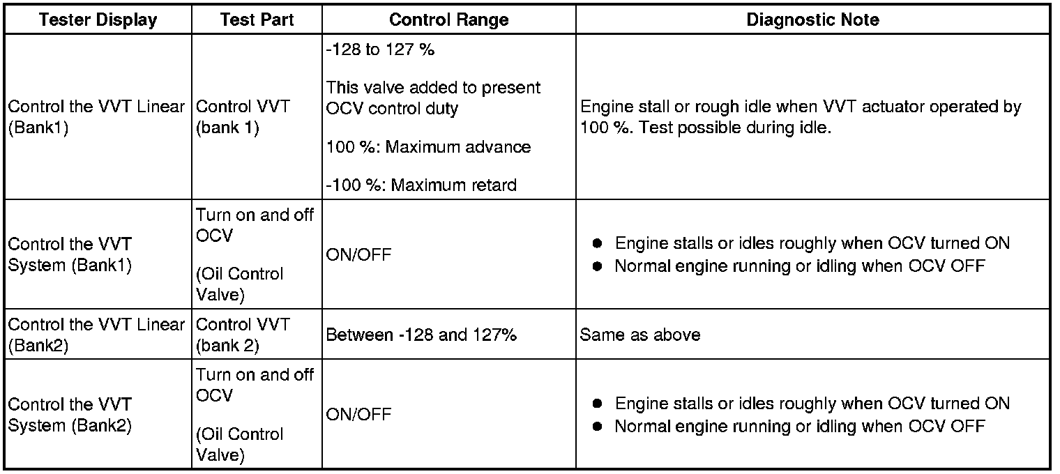 - VVT CTRS: Command to activate exhaust and intake side oil control valves of bank 1.