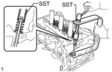 (b) Install the valve, compression spring and spring retainer to the cylinder head.