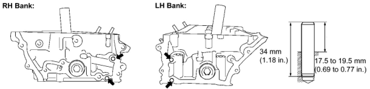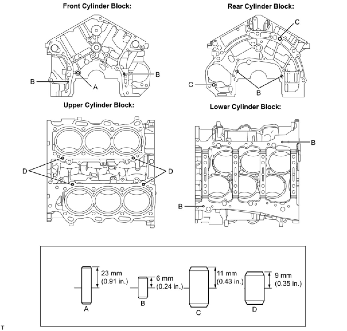 Main bearings come in widths between 18.0 mm (0.709 in.) and 21.0 mm (0.827 in.). Install the 21.0 mm (0.827 in.) bearings in the No. 1 and No. 4 cylinder block journal positions with the main bearing cap. Install the 18.0 mm (0.709 in.) bearings in the No. 2 and No. 3 positions.