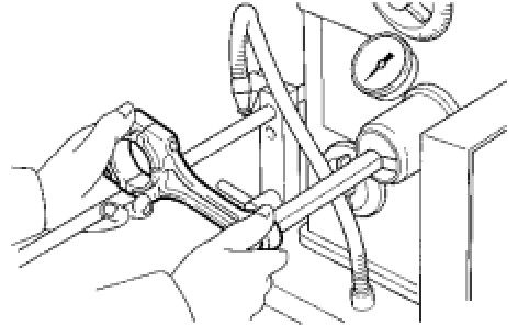 (c) Using a pin hole grinder, hone the bush to obtain the specified clearance between the bush and piston pin.