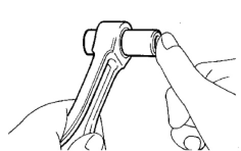 (e) Coat the piston pin with engine oil, and push it into the connecting rod with your thumb.