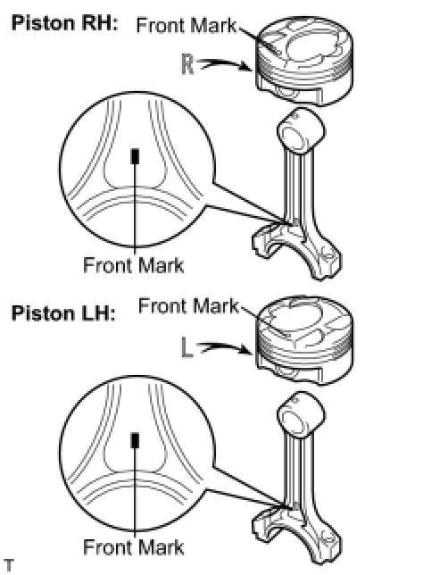 (d) Check that the front mark of the connecting rod cap is facing forward.