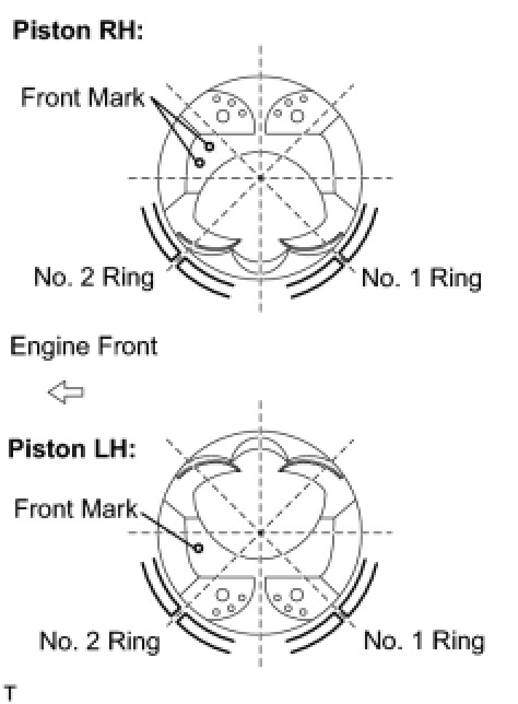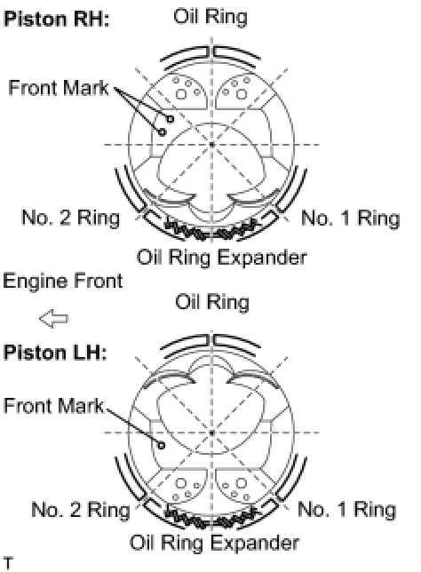 (c) Using a piston ring expander, install the 2 compression rings so that the painted marks are positioned as shown in the illustration.