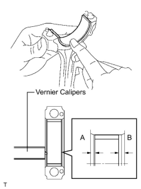 (2) Using vernier calipers, measure the distance between the bearing cap's edge and the lower bearing's edge.
