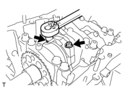 (a) Using a 5 mm hexagon wrench, install the oil nozzles.