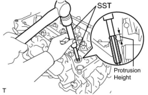 (d) Using SST, tap in new valve guide bushes to the specified protrusion height.