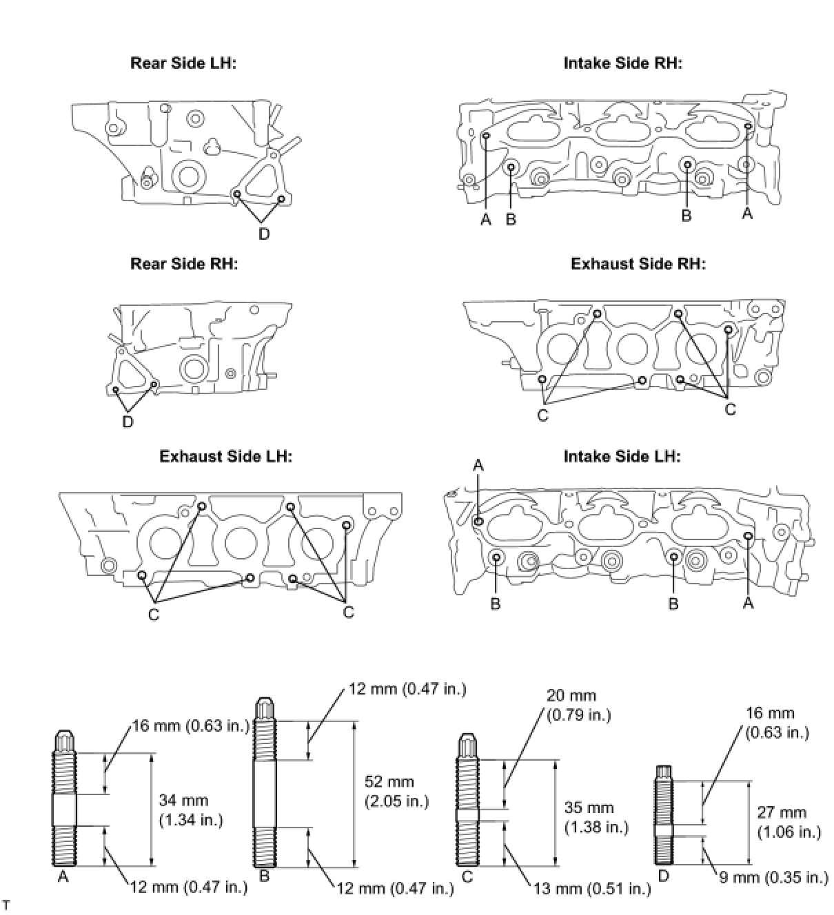 Torque: 4.0 Nm (41 kgf-cm, 35 in-lbf) for bolt D