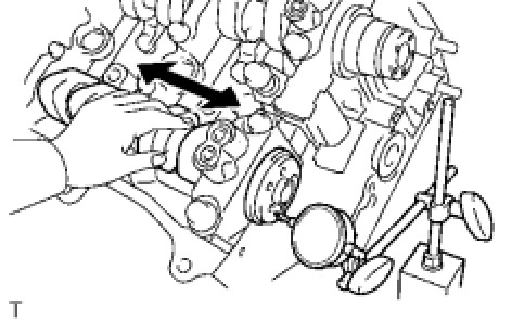 (2) Using a dial indicator, measure the thrust clearance while moving the camshaft back and forth.