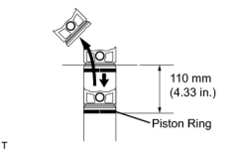(b) Using a piston, push the piston ring a little beyond the bottom of the ring travel, 110 mm (4.33 in.) from the top of the cylinder block.