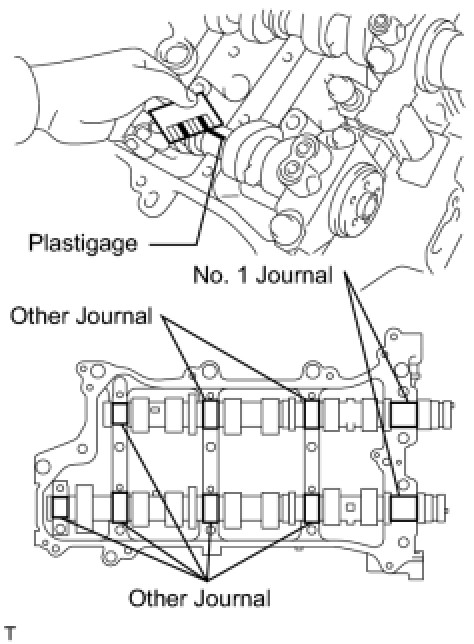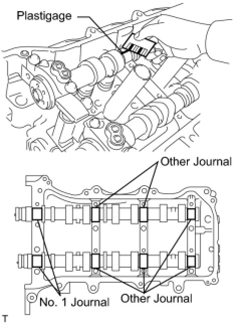 (c) Lay a strip of Plastigage across each of the camshaft journals.