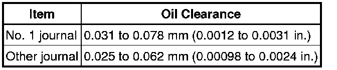 If the oil clearance is greater than the maximum, replace the bearings. If necessary, replace the crankshaft.