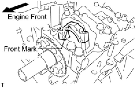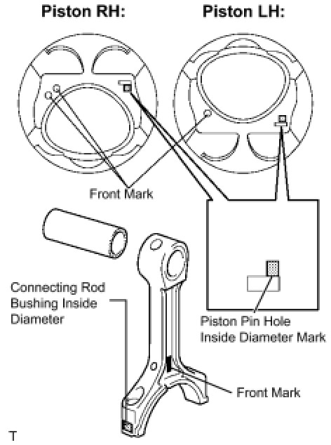 (d) Check that the front mark of the connecting rod cap is facing forward.