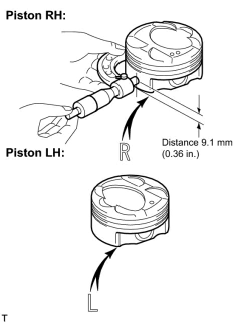 (a) Using a micrometer, measure the piston diameter at right angles to the piston center line where the distance from the piston end is as specified.
