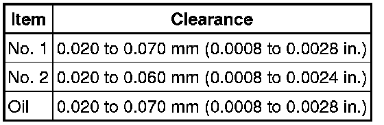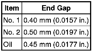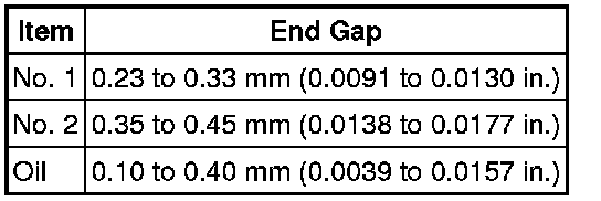 If the end gap is greater than the maximum, replace the piston ring. If the end gap is greater than the maximum even with a new piston ring, rebore all the 6 cylinders or replace the cylinder block.