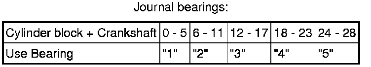 (i) If replacing a bearing, replace it with one having the same number. If the number of the bearing cannot be determined, select the correct bearing by adding together the numbers imprinted on the cylinder block and crankshaft, then refer to the table below for the appropriate bearing number. There are 5 size of standard bearings, marked "1", "2", "3", "4" and "5" accordingly.