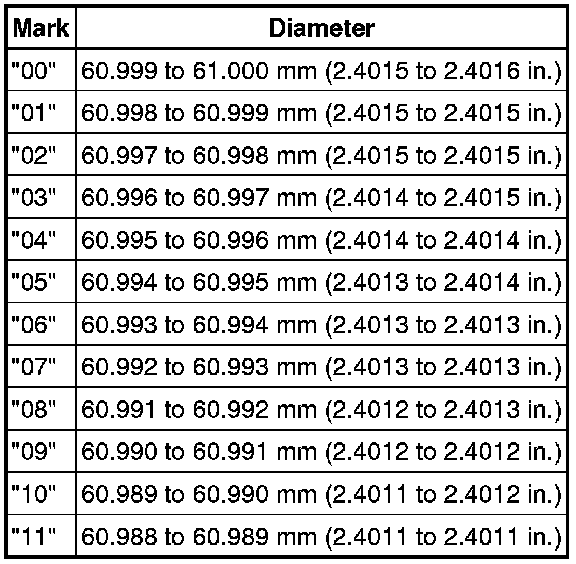 60.988 to 61.000 mm (2.4011 to 2.4016 in.)