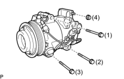 Tighten the bolts in the order shown in the illustration to install the compressor and magnetic clutch.