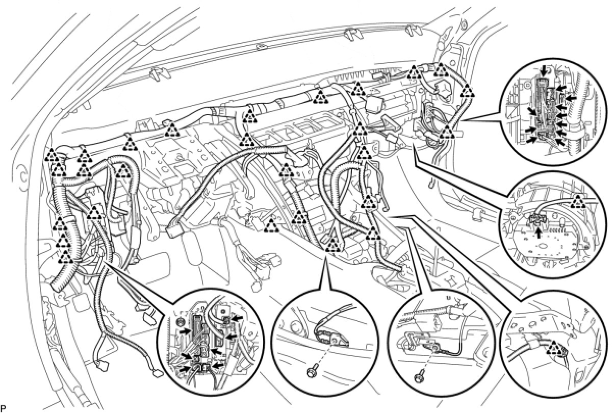 (a) Remove the 27 clamps and 19 connectors, and then disconnect the wire harness.