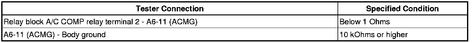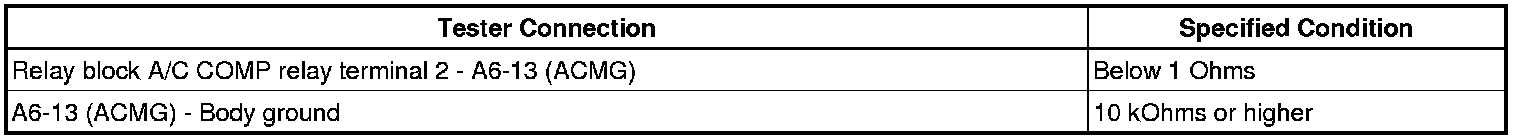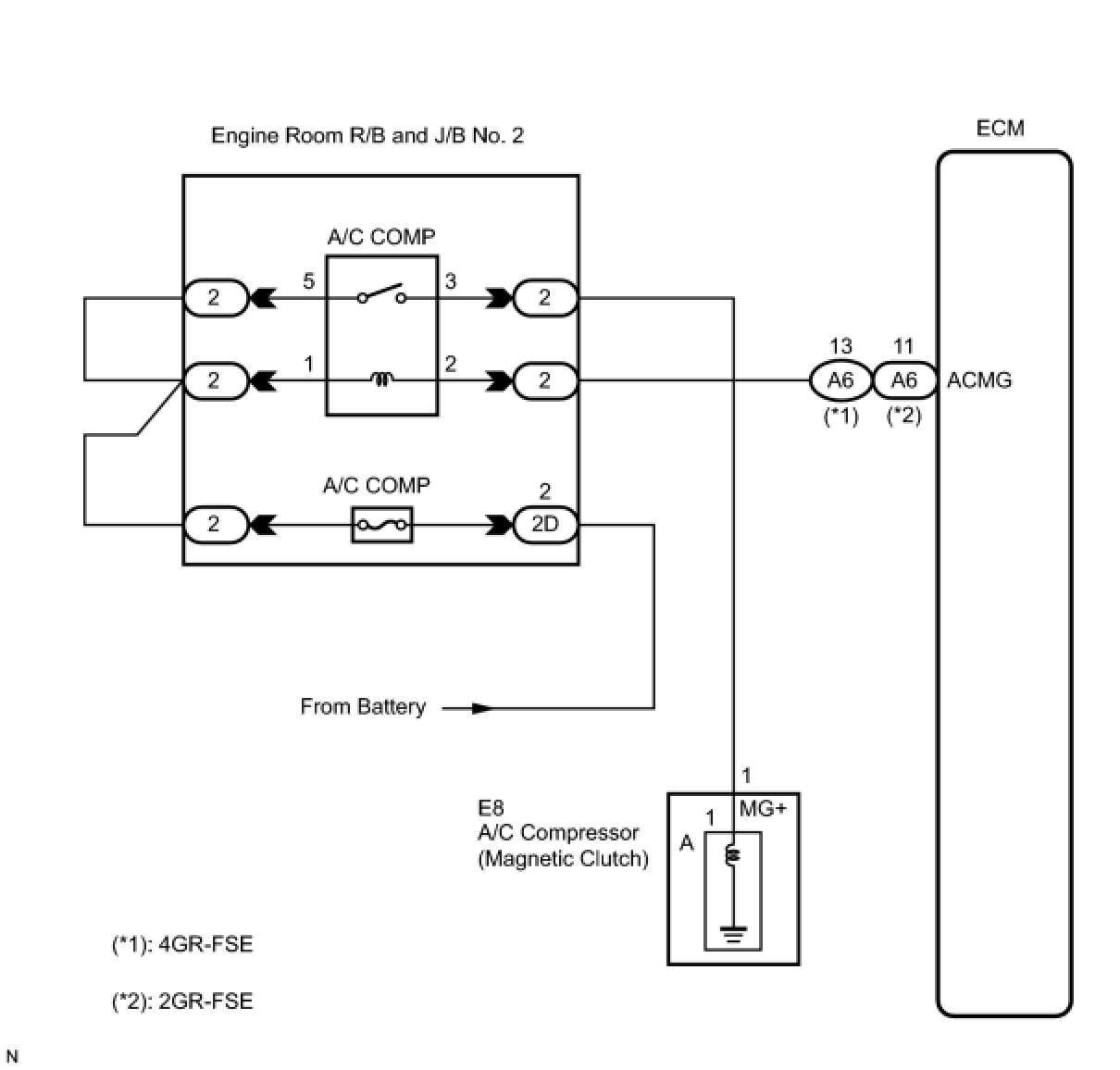 OK -- REPAIR OR REPLACE HARNESS OR CONNECTOR (A/C COMPRESSOR - ENGINE ROOM R/B AND J/B NO. 2)