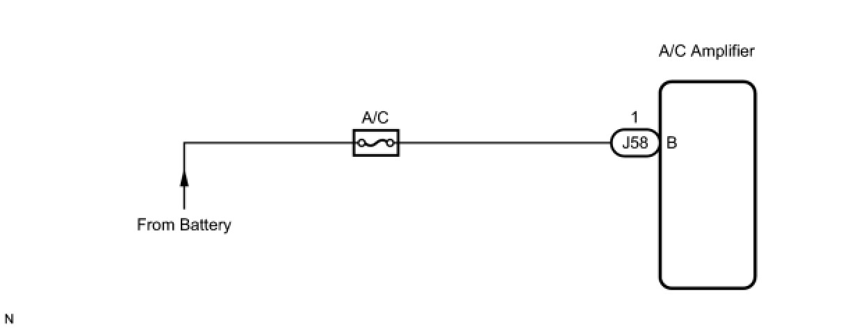 The back-up power source circuit for the A/C amplifier is shown below. Power is supplied even when turning the engine switch off and is used for diagnostic trouble code memory, etc.