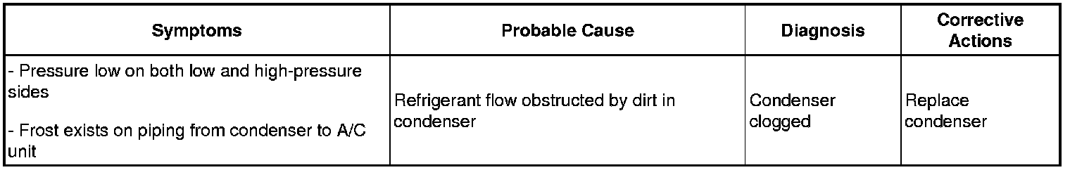 (2) The A/C system periodically changes between normal and improper function due to moisture in the refrigeration system.