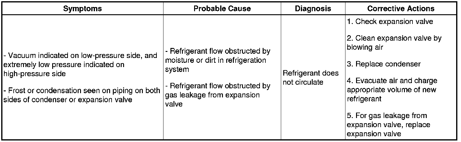 (4) The A/C system does not function effectively due to poor circulation of the refrigerant.