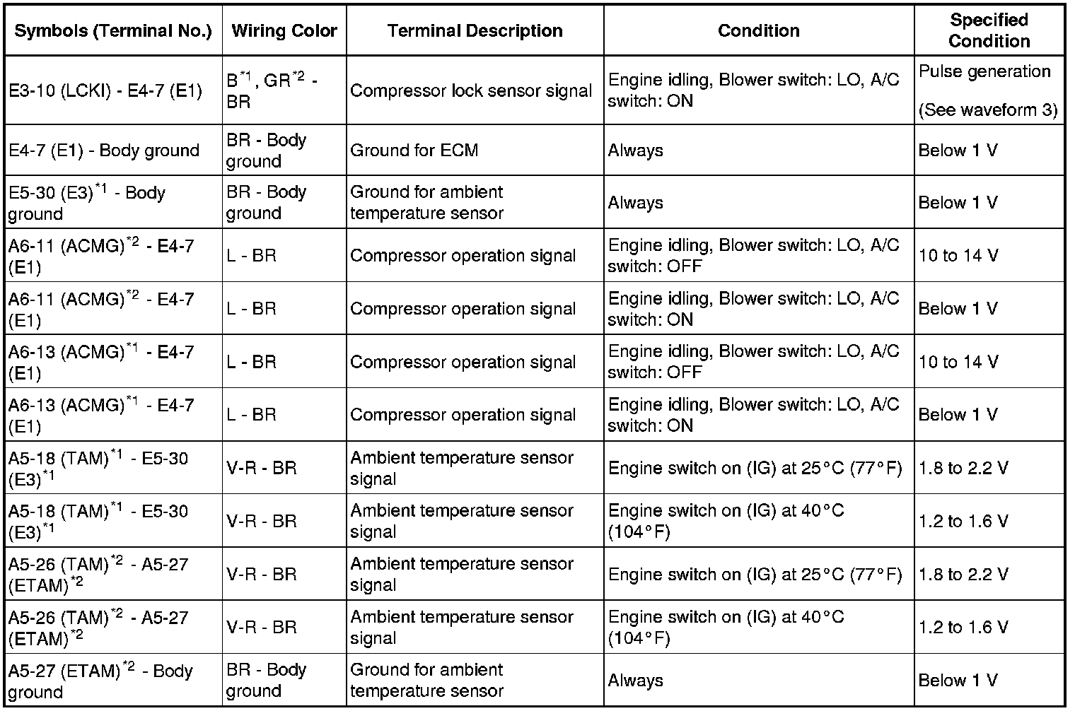 AIR CONDITIONING: AIR CONDITIONING SYSTEM: TERMINALS OF ECU