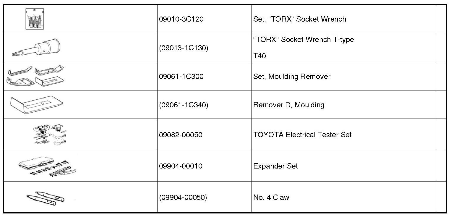 PREPARATION: AIR CONDITIONING: RECOMMENDED TOOLS