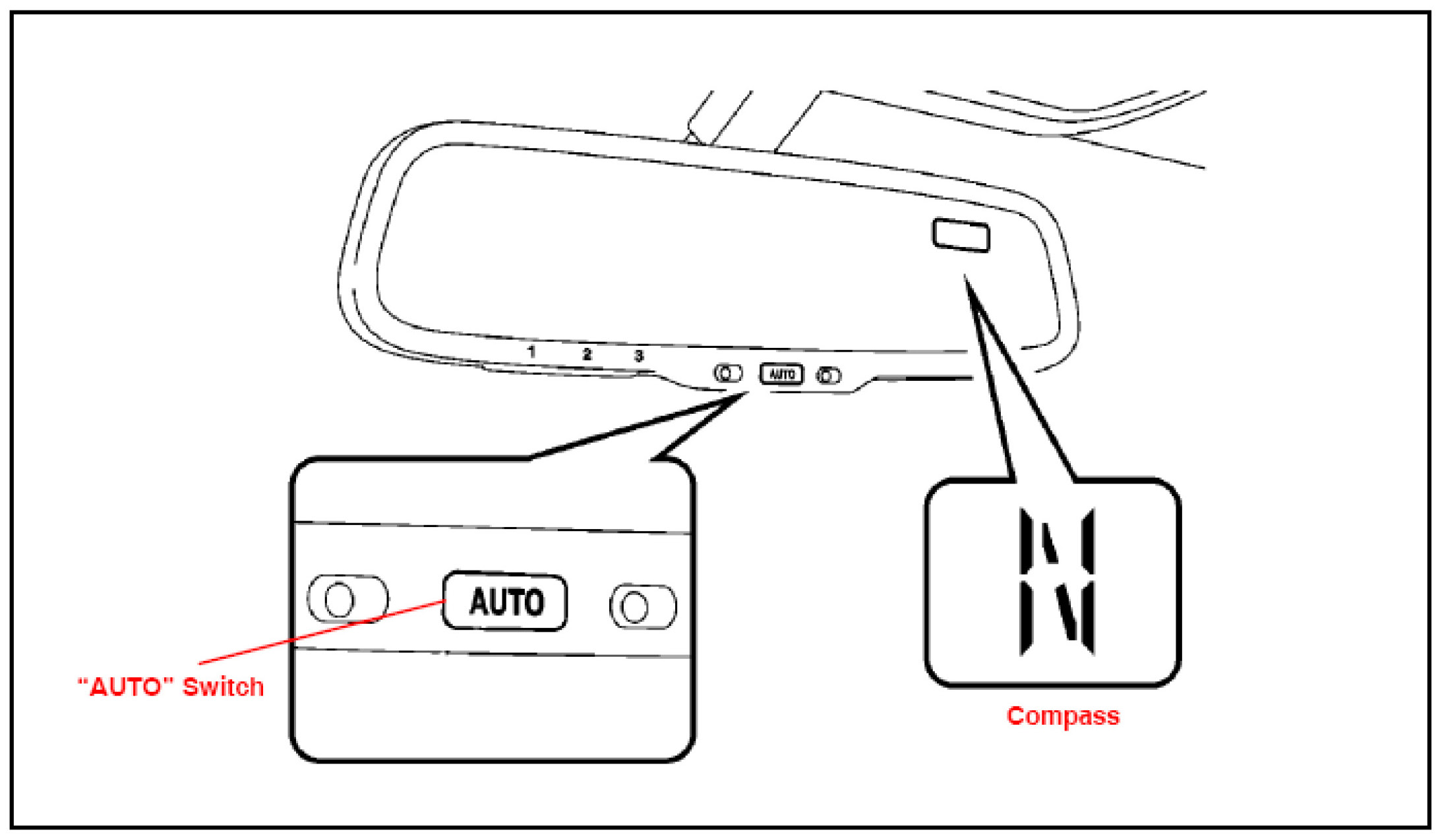 Pushing the "AUTO" switch turns on or off the compass display.