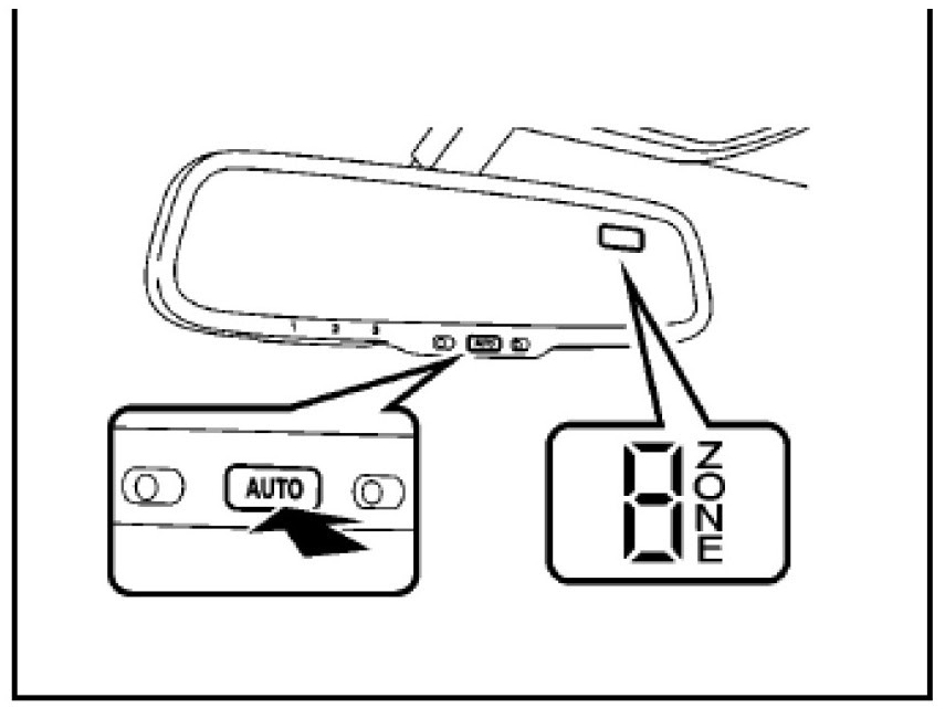 2. Push the "AUTO" switch for approximately 6 seconds until the zone number (1 - 15) appears on the display. Then push the switch to select the number of the zone where the vehicle is located.