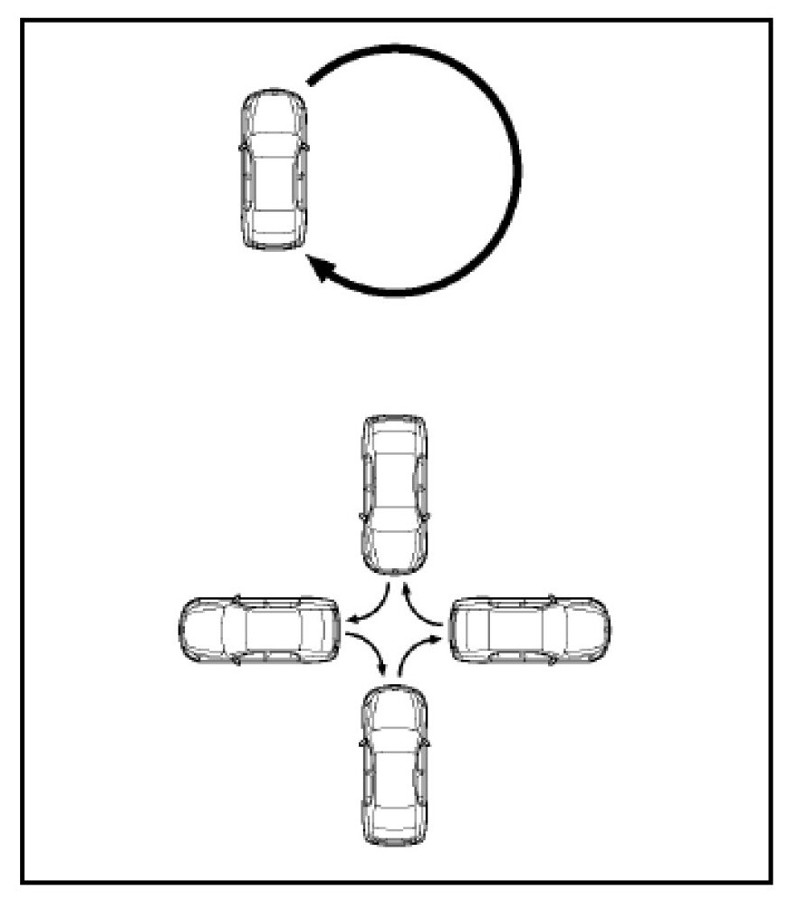 4. Drive the vehicle slowly at 5 mph/8 kph, or less, in a circle until the direction is displayed. If there is not enough space to drive in a circle, drive around the block until the direction is displayed.
