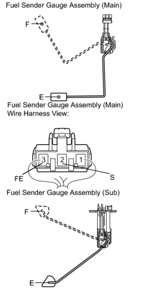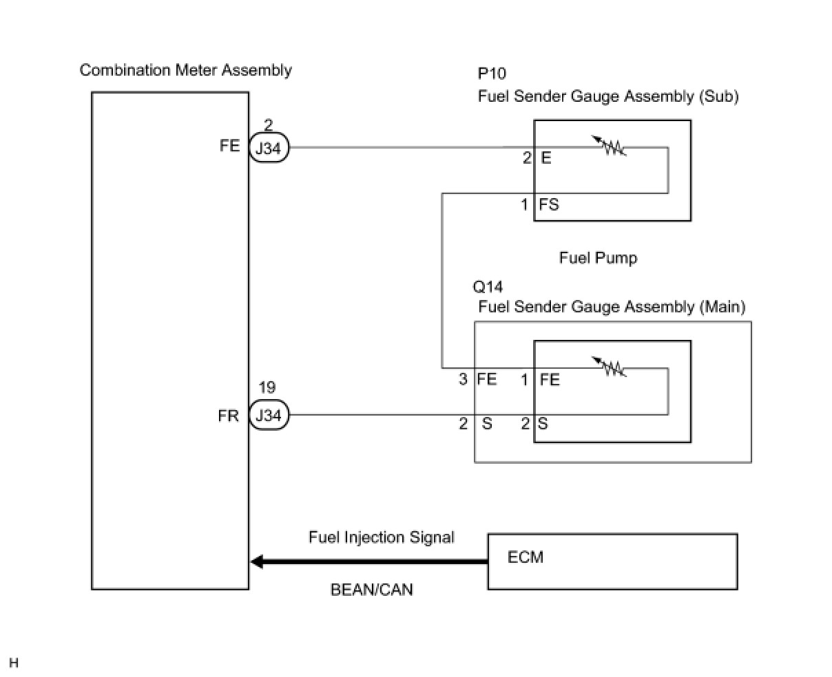 - The meter CPU receives fuel level signals from this circuit. The fuel sender controls the resistance value in accordance with changes in sender gauge position. The meter CPU detects the fuel level from the transformed voltage. The meter CPU outputs a constant voltage of 12 V to the fuel sender. In the fuel sender, the voltage is changed due to the resistance. The changed voltage is output from the fuel sender to the meter CPU, thus the fuel level is determined by fuel injection signals transmitted using the BEAN lines.